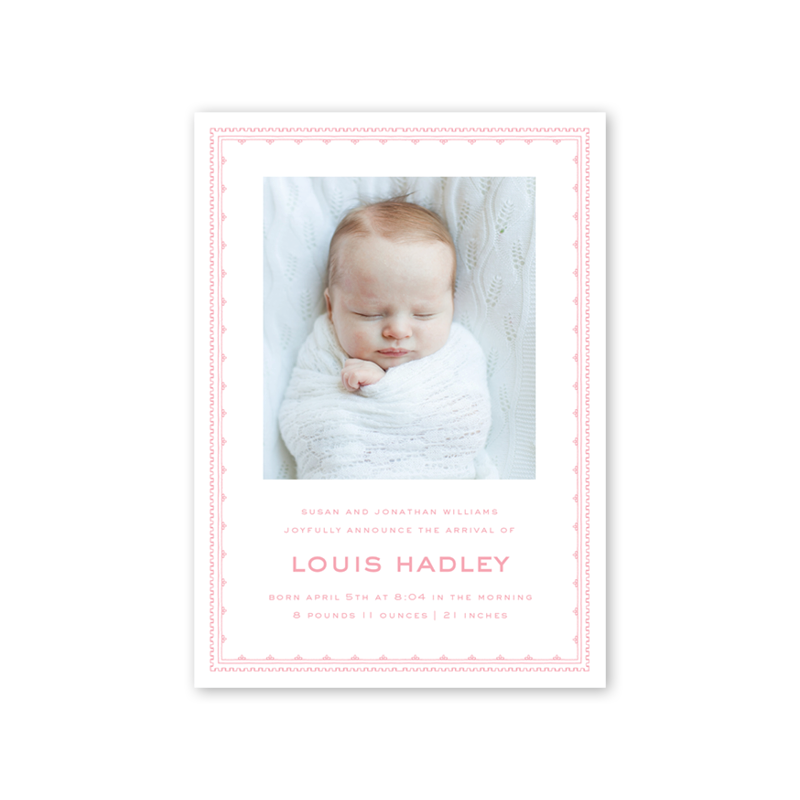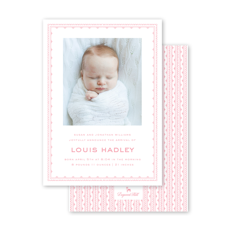 Neoclassic Border Pink Birth Announcement