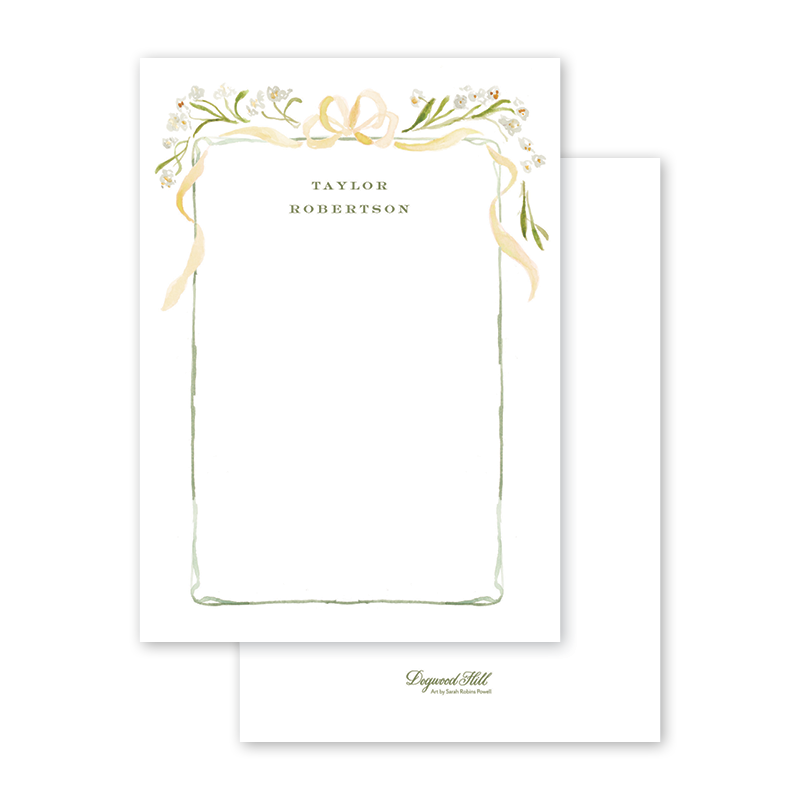 Select your order quantity from the dropbox menu below and check your total. Enter the personalization text for your notecard in the “Note” box below. Click Add to Cart. You will receive a proof notification via email and text message within 3 to 5 business days.Each card comes with one free BLANK Eggshell White envelope.