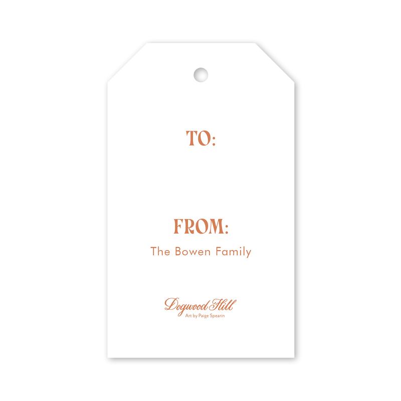 Select your gift tag quantity from the dropdown menu below and check your total. Then click the Customize and Add to Cart button to create your gift tag and add it to your cart.