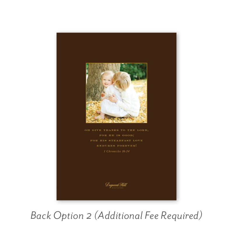 Select your order quantity from the dropdown menu below and check your total. Then click the Customize and Add to Cart button to create your card and add it to your cart.Want to add up to 4 photos on the back or inside of your card? Click here to add the fee to your cart.