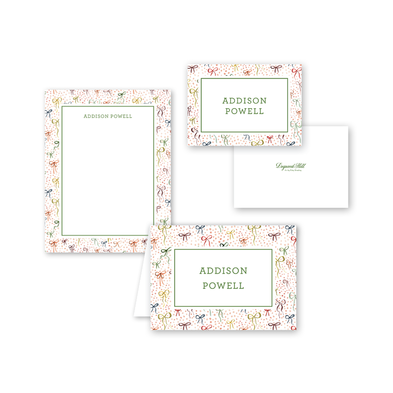25 personalized notecards sized 3.5 x 4.875 inches folded on 120 lb Mohawk Eggshell White Paper