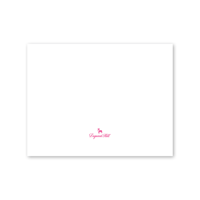 Select your order quantity from the dropbox menu below and check your total. Enter the personalization text for your notecard in the “Note” box below. Click Add to Cart. You will receive a proof notification via email and text message within 3 to 5 business days.Each card comes with one free BLANK Eggshell White envelope.