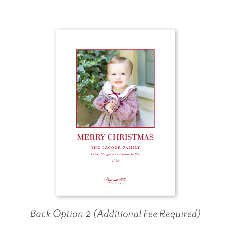Select your order quantity from the dropdown menu below and check your total. Then click the Customize and Add to Cart button to create your card and add it to your cart.Want to add up to 4 photos on the back or inside of your card? Click here to add the fee to your cart.