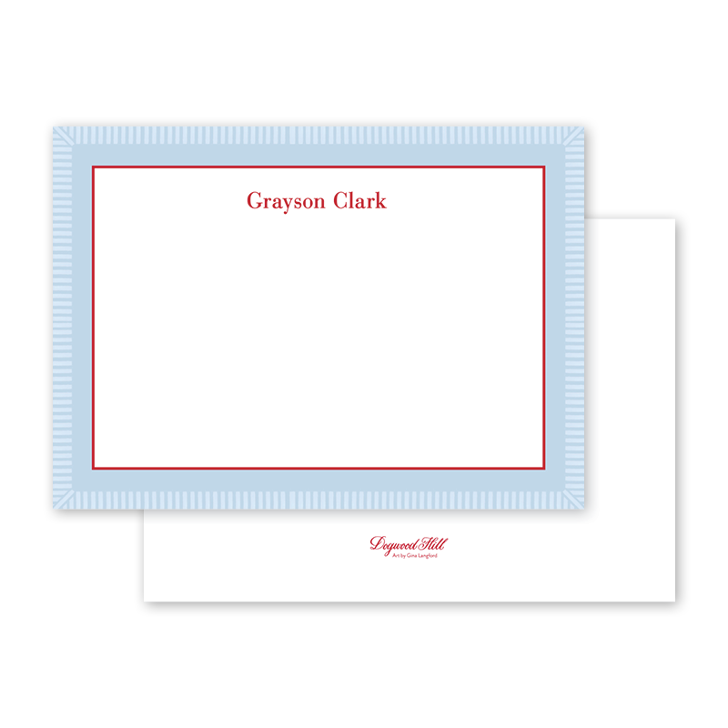 Select your order quantity from the dropbox menu below and check your total. Enter the personalization text for your notecard in the “Note” box below. Click Add to Cart. You will receive a proof notification via email and text message within 3 to 5 business days.