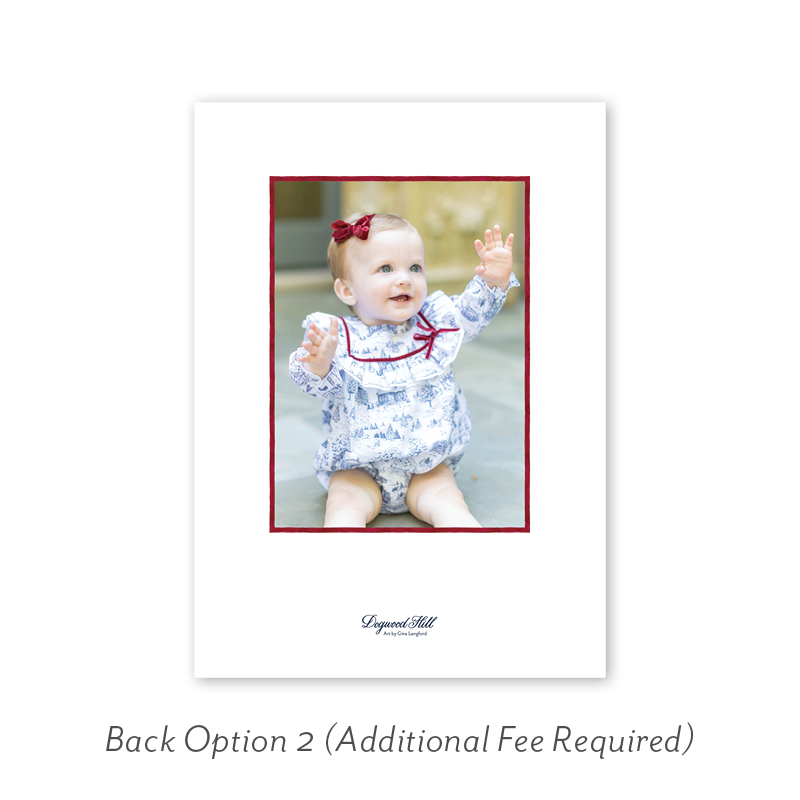 Select your order quantity from the dropdown menu below and check your total. Then click the Customize and Add to Cart button to create your card and add it to your cart.Want to add up to 4 photos on the back or inside of your card? Click here to add the fee to your cart.