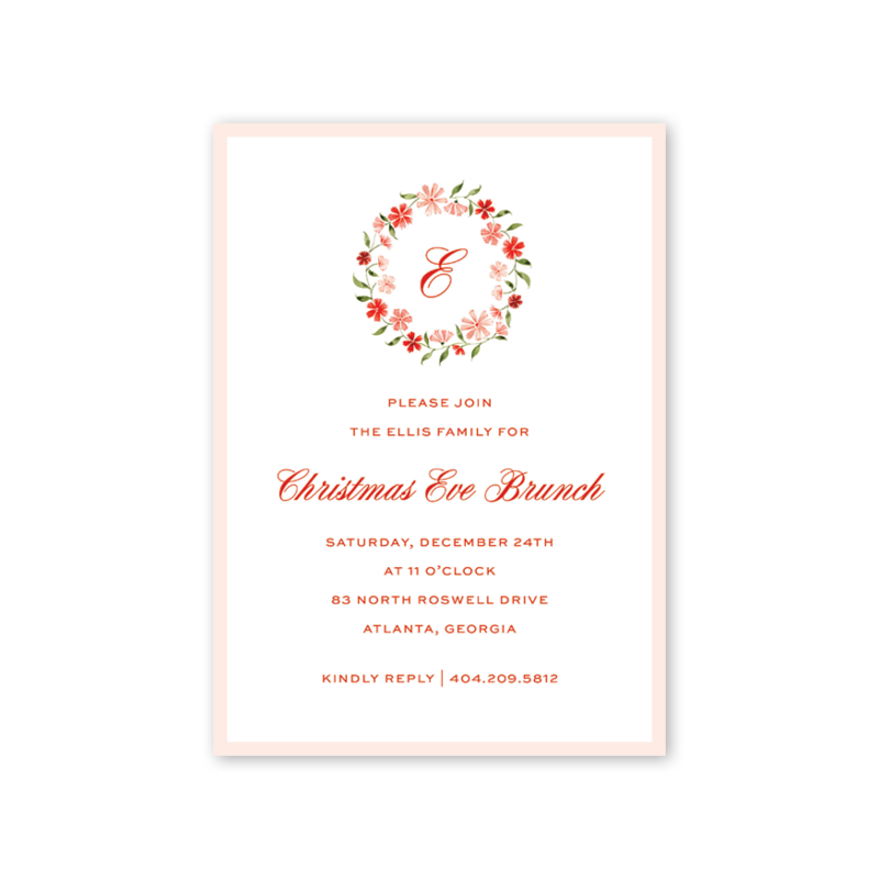 Poinsettia Blooms Wreath Invitation