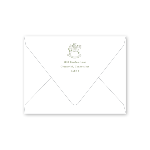 Porcelain Verte Rocking Horse Landscape Folded Birth Announcement