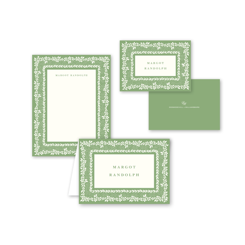 25 personalized notecards sized 4.5 x 6.25 inches on 120 lb Mohawk Eggshell White Paper