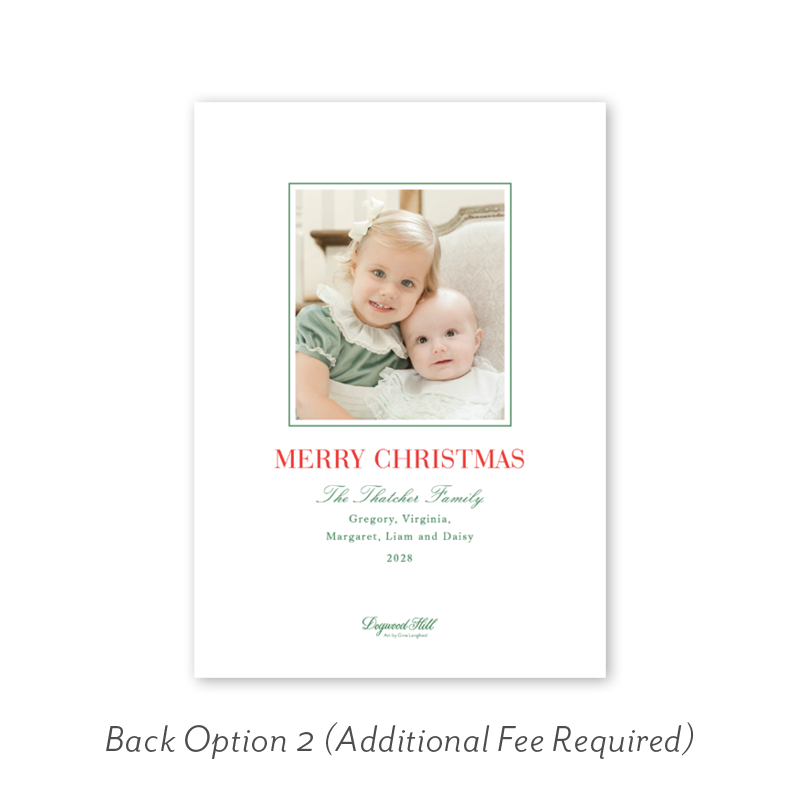 Want to add up to 4 photos on the back or inside of your card? Click here to add the fee to your cart.