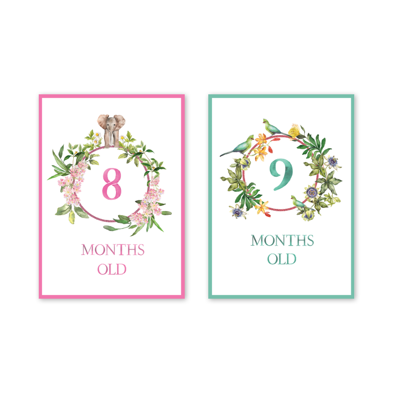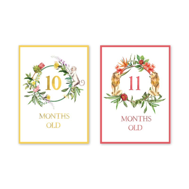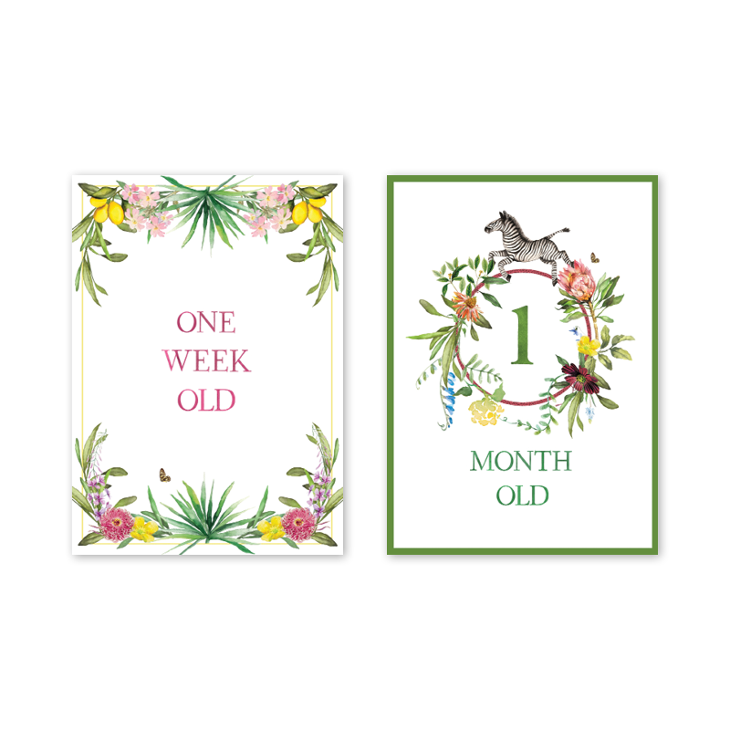 Photograph your baby's first year of life with our charming Milestone Cards! Each set includes fifteen 5x7 inch cards that are printed on 120 lb Mohawk Eggshell White paper.
