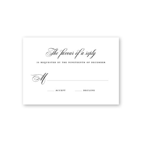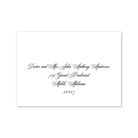 Each invitation comes with a blank inner and outer envelope and return address printing on the outer envelope flap. Envelope liner and recipient address printing for each envelope may be purchased for an additional cost on the main collection page.