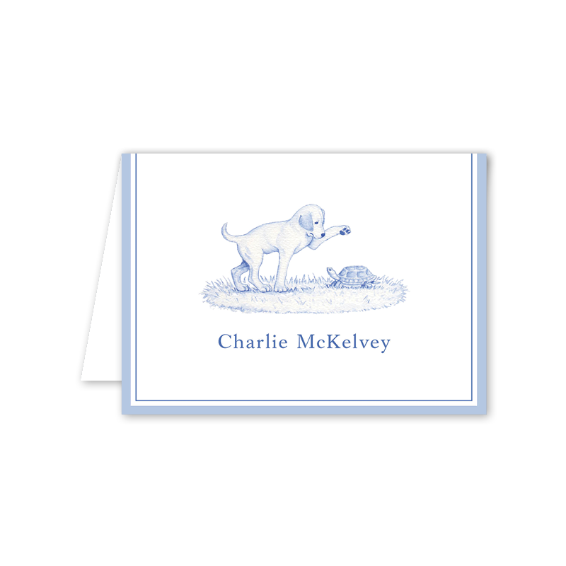 Select your order quantity from the dropbox menu below and check your total. Enter the personalization text for your notecard in the “Note” box below. Click Add to Cart. You will receive a proof notification via email and text message within 3 to 5 business days.Each card comes with one free BLANK Eggshell White envelope.