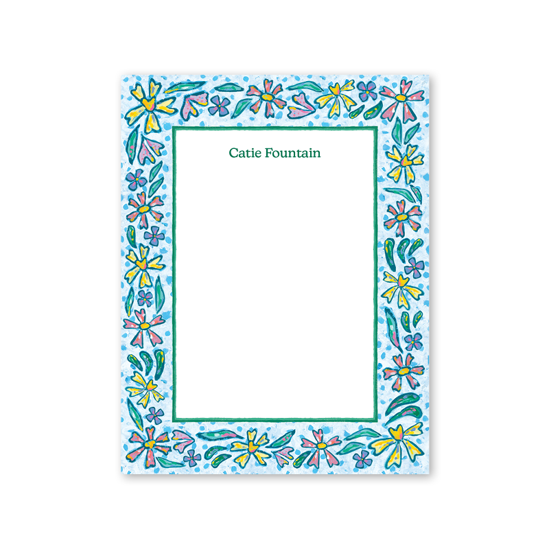 100 sheet personalized notepad sized 4.25 x 5.5 inches on 80 lb paper