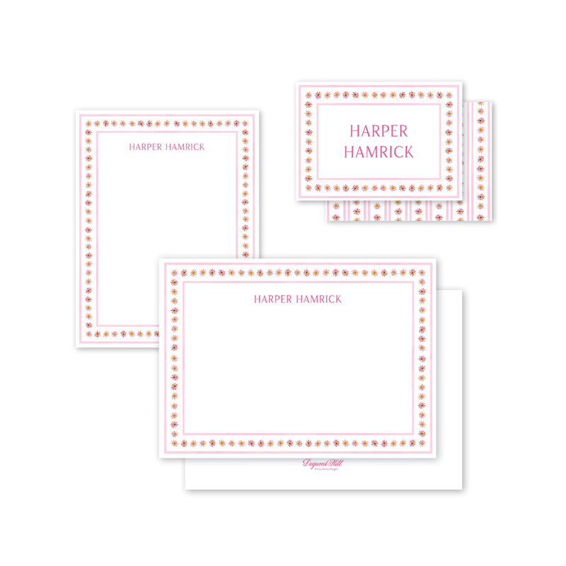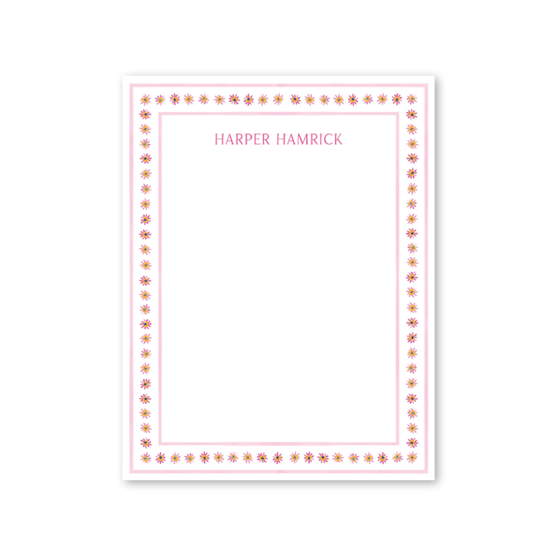 75 sheet personalized notepad sized 4.25 x 5.5 inches on 100 lb Mohawk Eggshell White Paper