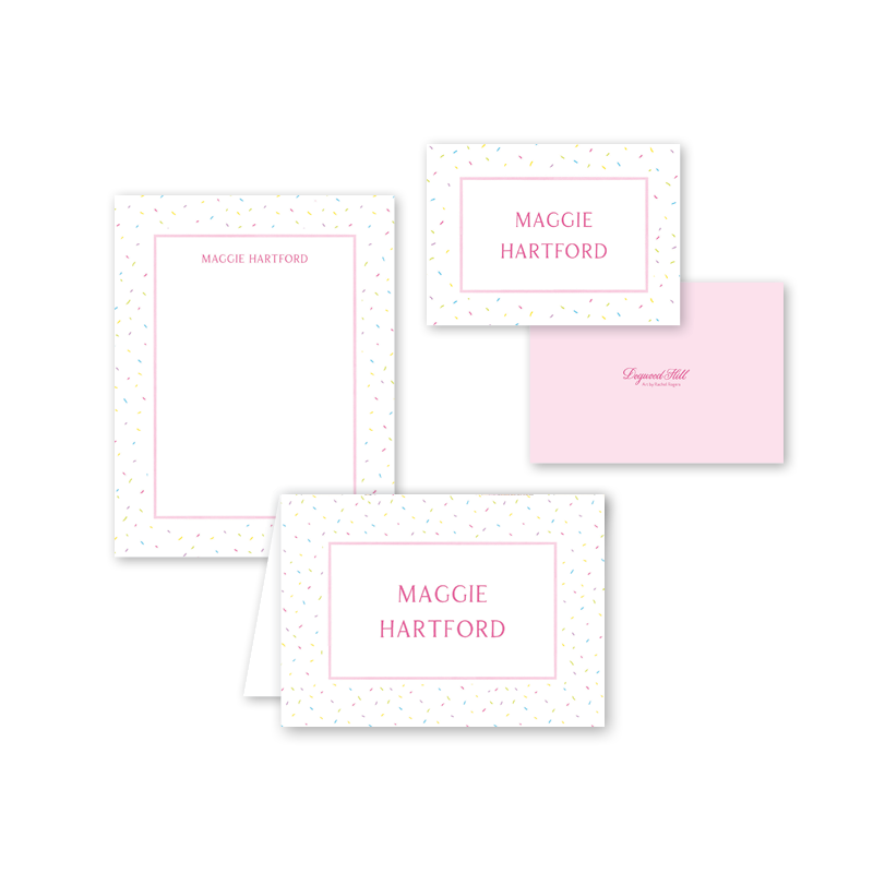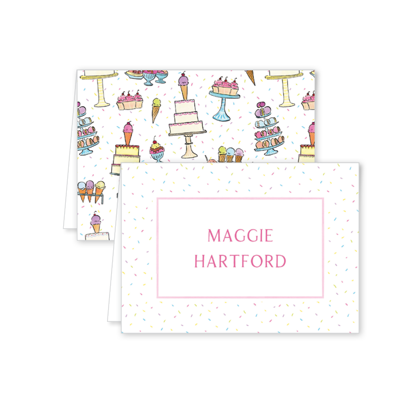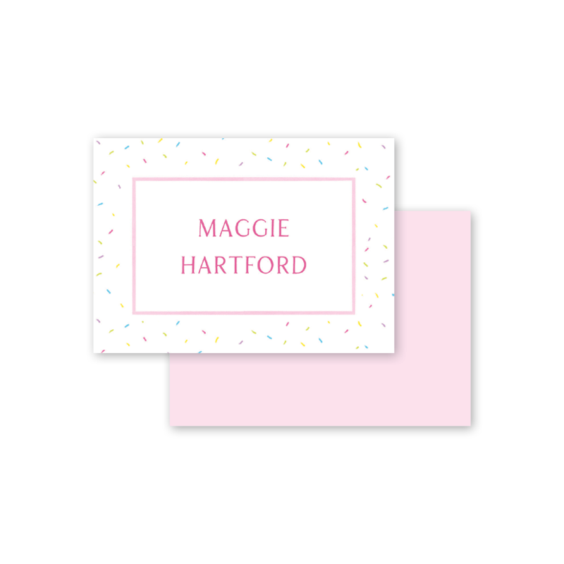 25 personalized notecards sized 3.5 x 4.875 inches folded on 120 lb Mohawk Eggshell White Paper