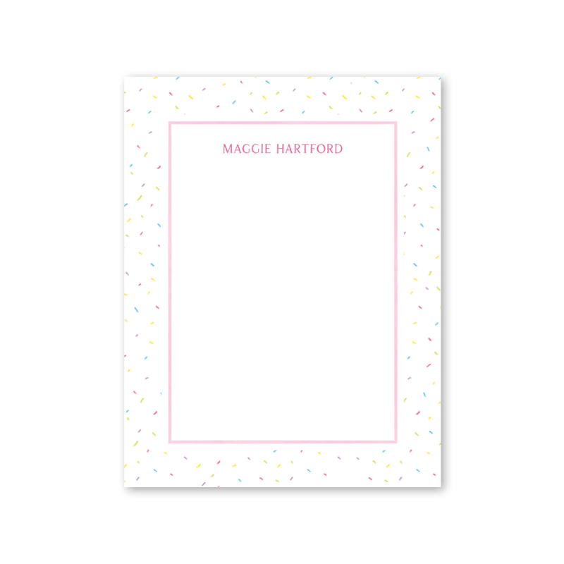 75 sheet personalized notepad sized 4.25 x 5.5 inches on 100 lb Mohawk Eggshell White Paper
