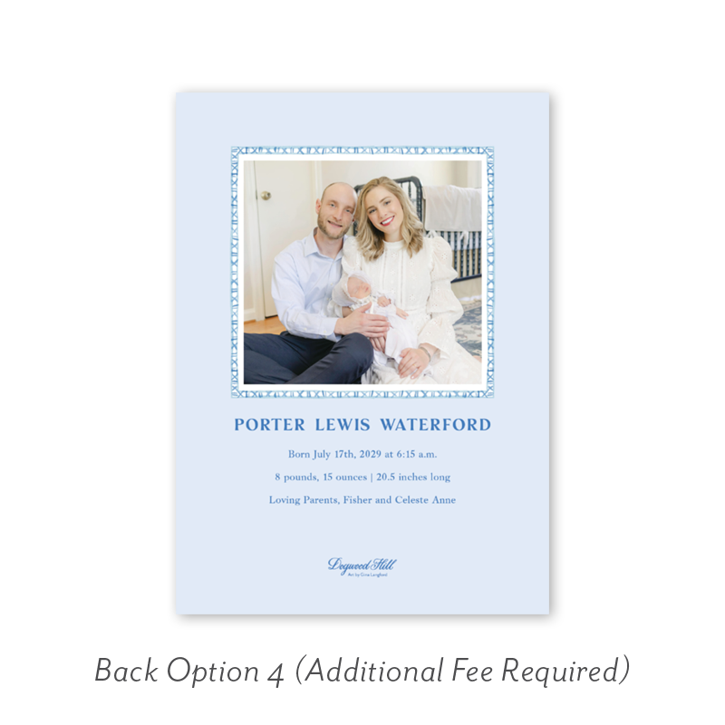 Want to add up to 4 photos on the back or inside of your card? Click here to add the fee to your cart.