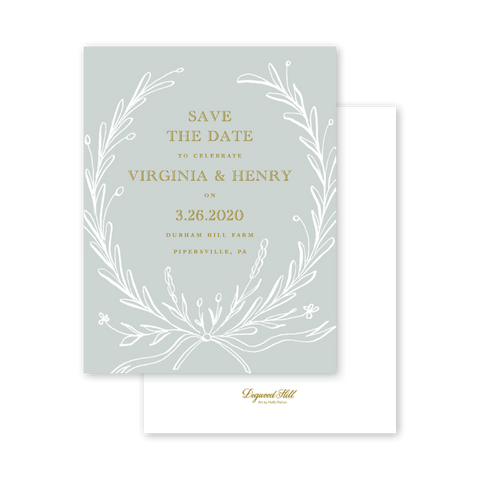 Select your order quantity from the dropdown menu below and check your total. Enter the text for your Save the Date in the “Note” box below. Click Add to Cart. Your wording does not have to match the sample product wording and can be customized for your Save the Date. You will receive a proof notification via email and text message within 3 to 5 business days.If your Save the Date includes a photo, please email a high resolution image along with your order number to weddings@dogwood-hill.com.