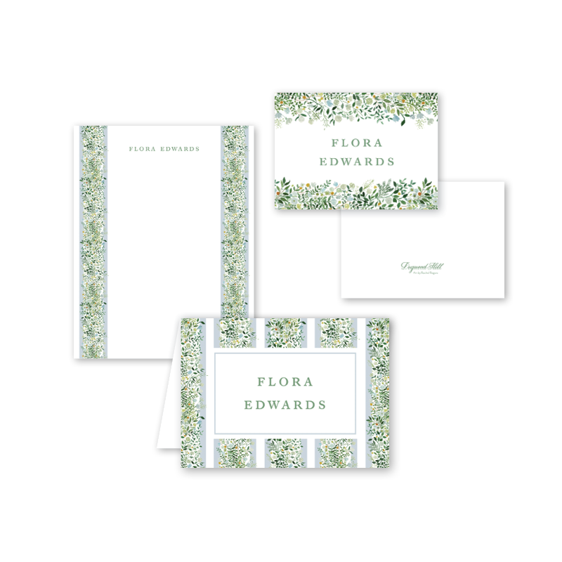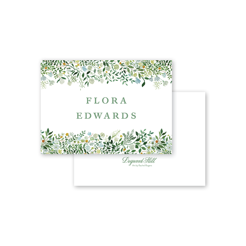 25 personalized notecards sized 3.5 x 4.875 inches folded on 120 lb Mohawk Eggshell White Paper