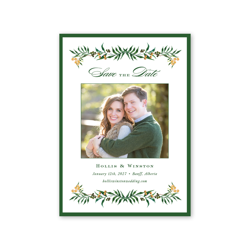 Winterberry Gold Trim Save the Date with Photo