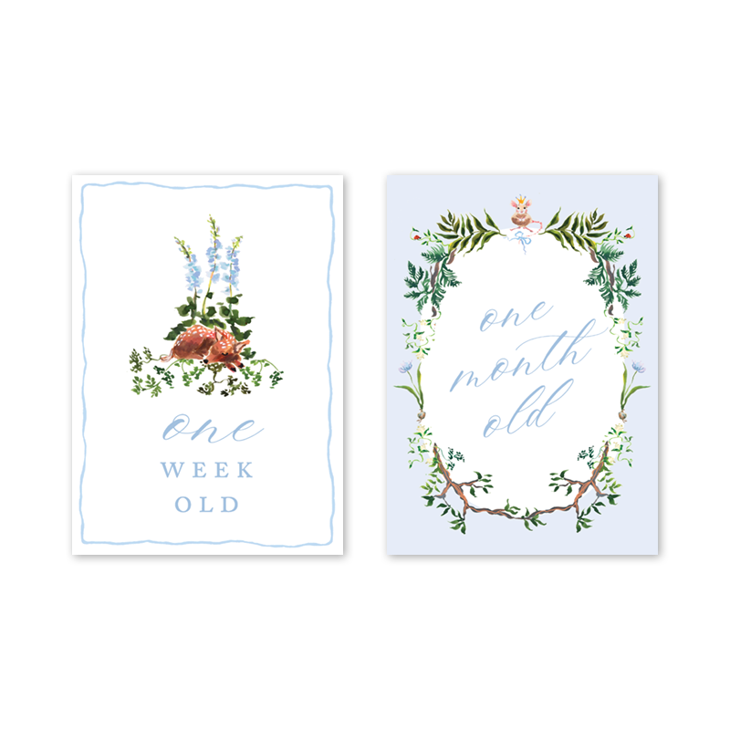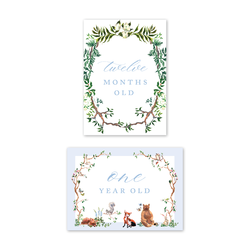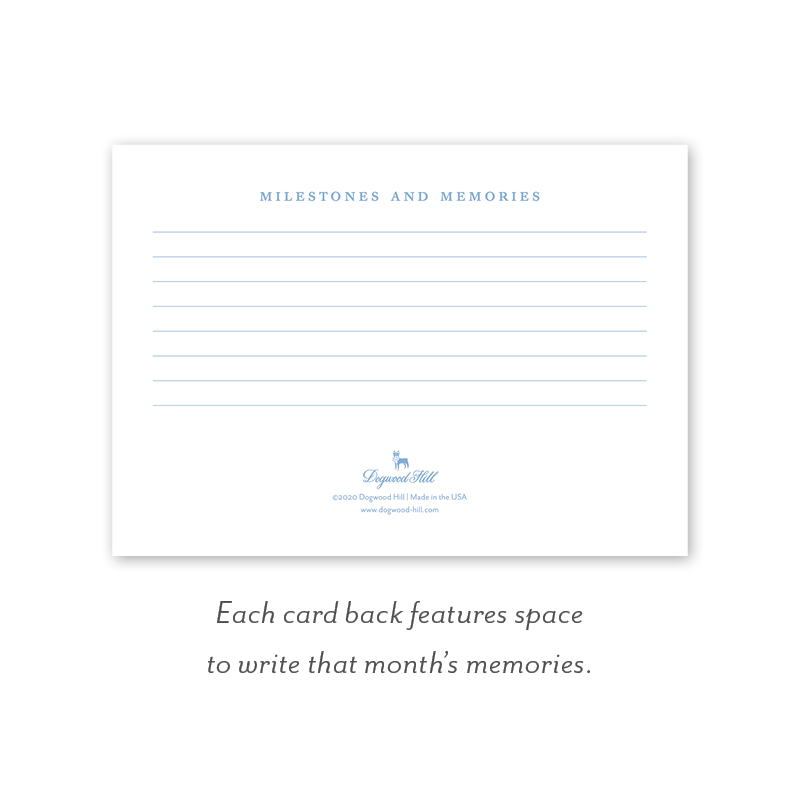 Photograph your baby's first year of life with our charming Milestone Cards! Each set includes fifteen 5x7 inch cards that are printed on 120 lb Mohawk Eggshell White paper.